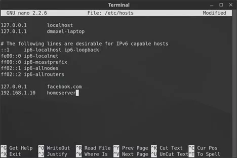 At the end of this file you can add the name of the website along with its IP address in the format specified in the file (e.g. x.x.x example.com), then save and close the file.