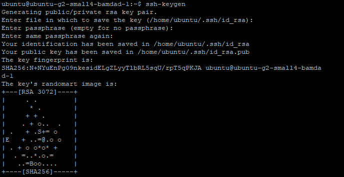 سپس از شما خواسته می‌شود مسیر کلید را تایید کنید. برای این کار Enter بزنید و در مرحله‌ی بعد که یک Passphrase برای کلید از خواسته می‌شود مجدد Enter بزنید تا Passphraseای برای آن انتخاب نشود.