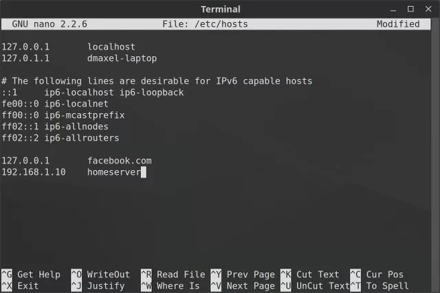 پس از وارد کردن دستور بالا سیستم از شما پسورد می‌خواهد (این پسورد همان پسوردی است که هنگام ورود به سیستم از آن استفاده می‌کنید)، با زدن پسورد می‌توانید به محتوای فایل hosts دسترسی پیدا کنید. در فایل hosts، آدرس IP به همراه نام دامنه‌ی خود را وارد و با زدن Ctrl+X تغییرات انجام شده را ذخیره کنید. هم‌چنین با استفاده از دستور زیر می‌توانید کاری کنید که DNS Cache پاک شده و تغییرات انجام شده، به‌سرعت اعمال شوند: