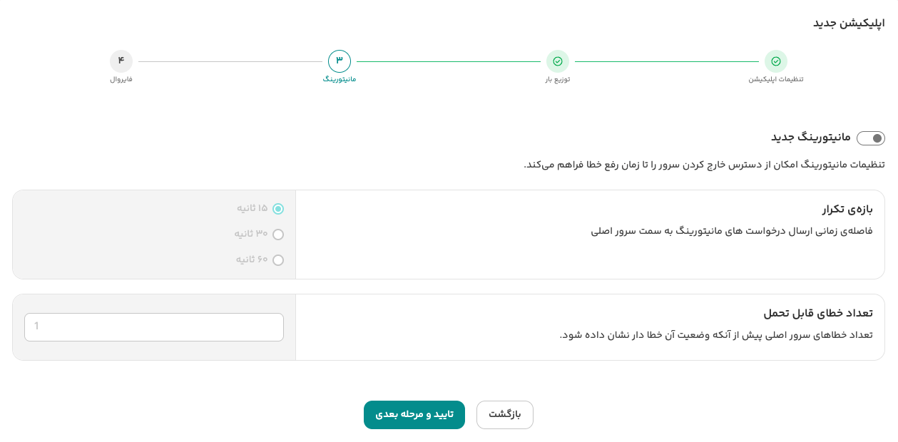 در این راهنما، برای سادگی، بخش مانیتورینگ را فعال و تنظیم نمی‌کنیم. با این حال راهنمای تنظیمات مانیتورینگ به شما برای پیکربندی این قسمت کمک می‌کند.